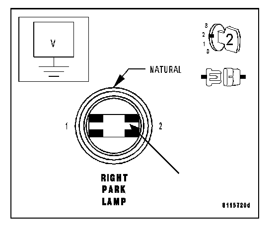 Measure the voltage between the Right Park Lamp harness connector cavity 2 and ground.