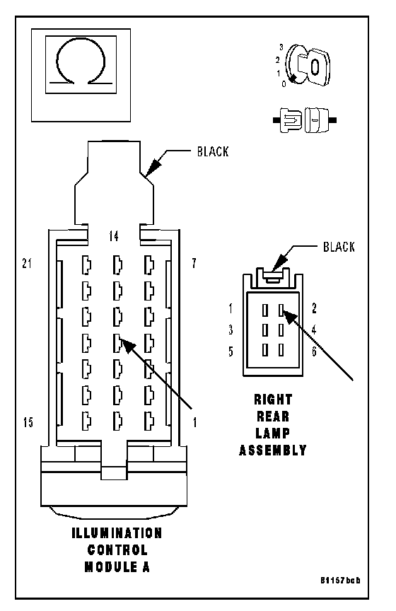 NOTE: If the right front side marker lamp, the right park lamp, the right rear side marker lamp, and the right tail lamp are inoperative, inspect Fuse 7 located in the Illumination Control Module/IP Fuse Block. If the fuse is open, repair the cause of the open fuse before continuing.