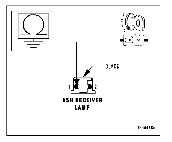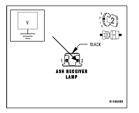 Measure the voltage between the Ash Receiver Lamp harness connector cavity 2 and ground.