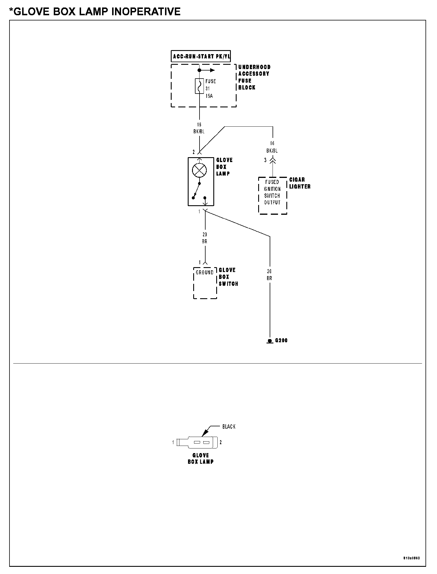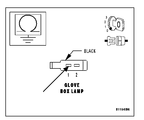 Remove the Glove Box Lamp Bulb and inspect for an open filament.