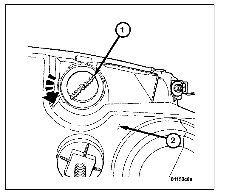 3. Rotate the turn signal bulb housing (1) counterclockwise and remove from the headlamp unit (2).