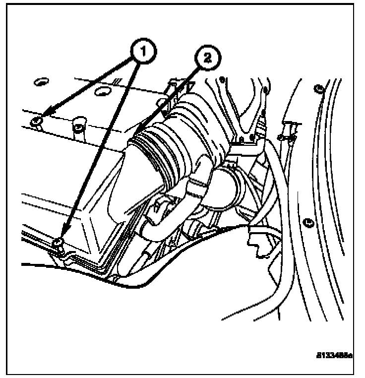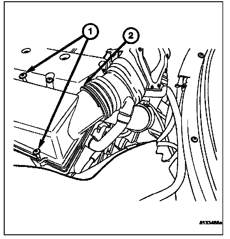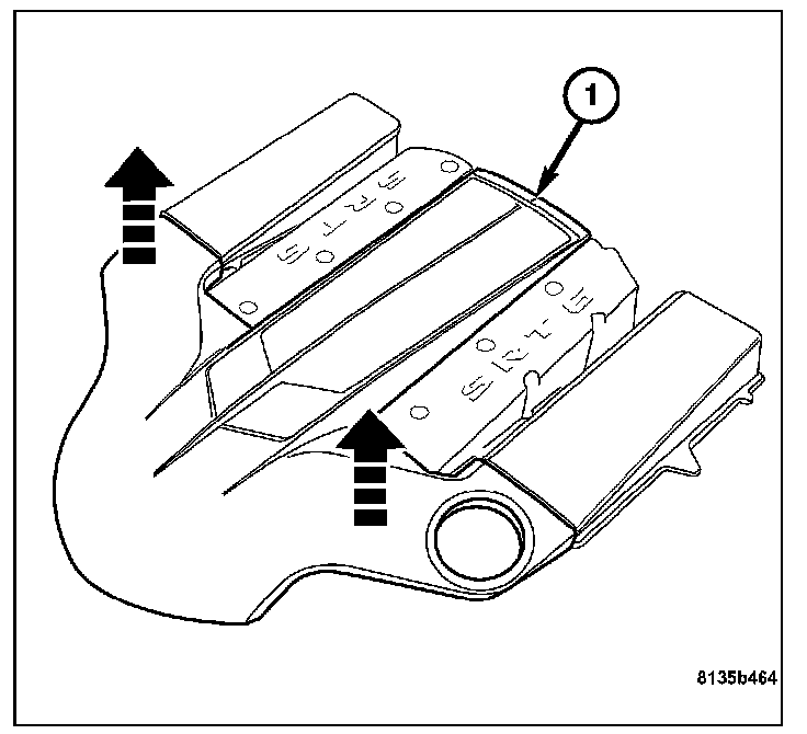 2. Remove the engine cover (1). Grasp both corners of the engine cover, and pull up firmly.