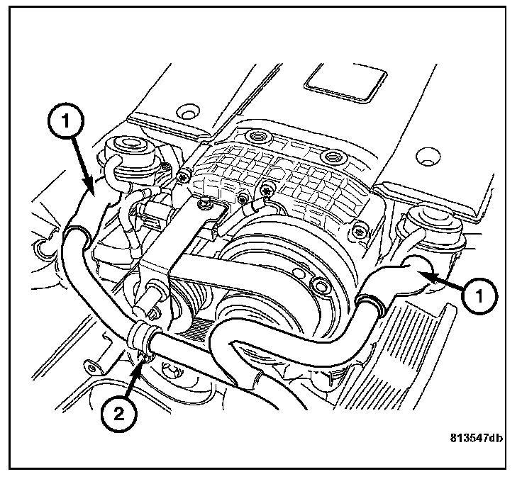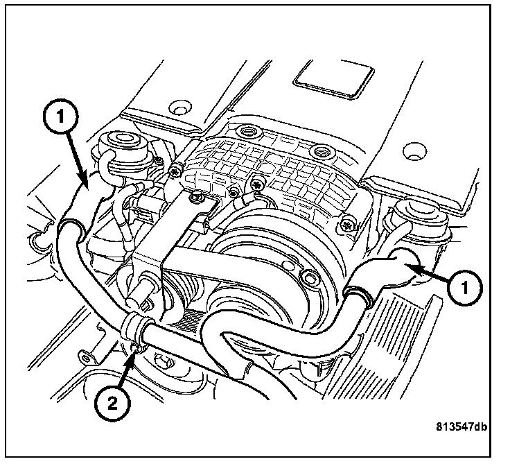 3. Disconnect the air pump tubes (1) from the air pump and solenoids.