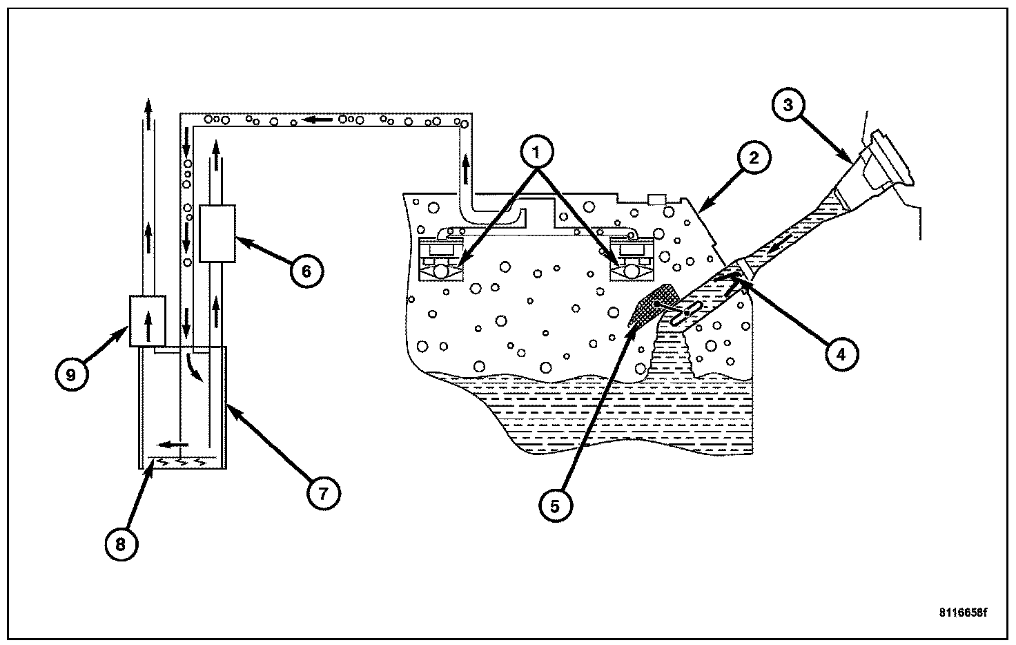 The Onboard Refueling Vapor Recovery (ORVR) System is used to remove excess vapors in the fuel tank during refueling.The Onboard Refueling Vapor Recovery (ORVR) System is an emission control device. The principle used in the ORVR system is that the fuel flowing into the fuel filler tube (3) creates an aspiration effect which draws air into the fuel filler tube (3). During refueling, the fuel tank (2) is vented to the EVAP Canister (7) to capture escaping vapors. With air flowing into the fuel filler tube (3), there are no fuel vapors escaping to the atmosphere. Once the refueling vapors are captured by the EVAP Canister (7), the vehicle"s computer controlled purge system draws vapor out of the canister for the engine to burn. The vapor flow is metered by the EVAP Purge Solenoid (6) so that there is minimal or no impact on driveability or tailpipe emissions.