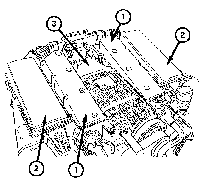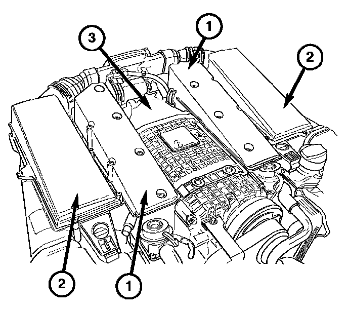 2. Remove the four charge air cooler flange bolts (2) from the supercharger housing.