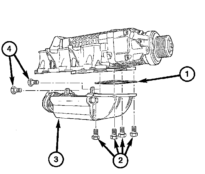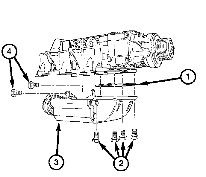 3. Remove the two mounting bolts (4) from the supercharger housing.