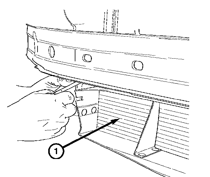3. Tilt the charge air cooler radiator away from the left and right mounting studs (1).