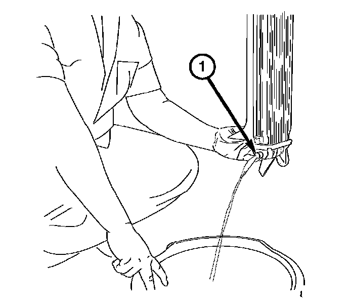 7. Remove the drain plug (1) from the charge air cooler radiator.