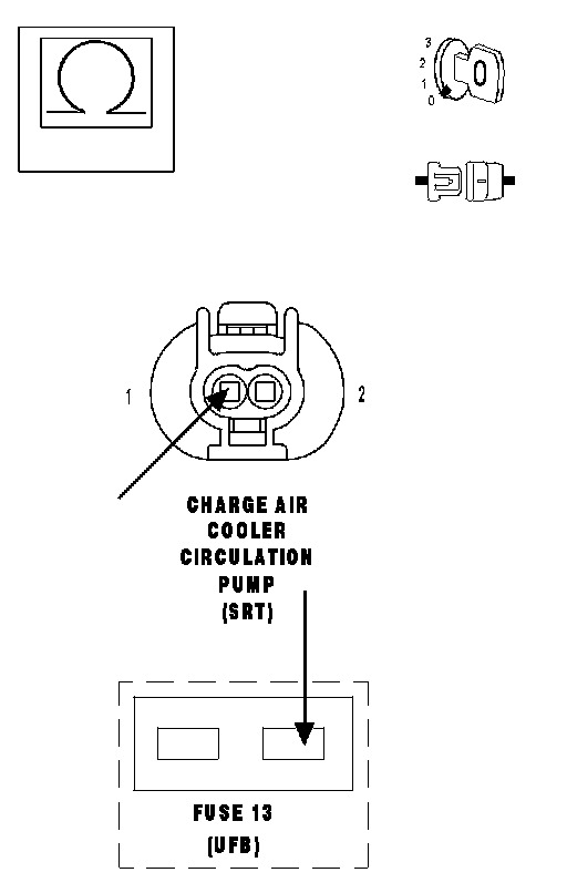 Note: If there are any Charge Air Cooler Circulation Pump DTCs present, diagnose the DTC(s) before continuing. Turn the ignition off. Remove and inspect Fuse 13 from the Underhood Accessory Fuse Block.