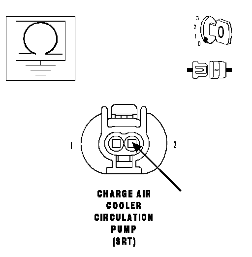 Measure the resistance between ground and the Ground circuit at the Charge Air Cooler Circulation Pump harness connector.