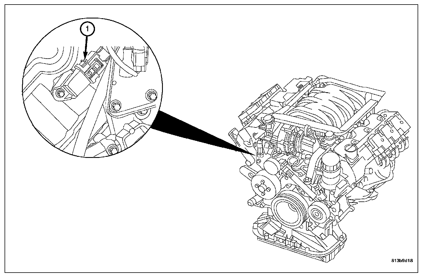 The Camshaft Position Sensor is a hall effect type sensor (3 wire). The Camshaft Position Sensor is mounted on the front of the right cylinder head.