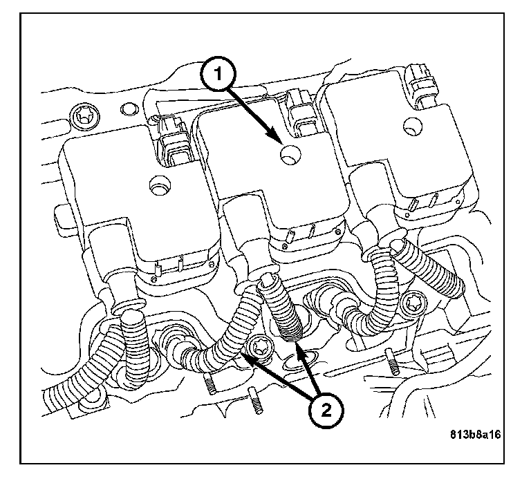 1. Remove the spark plug cable boot from the ignition coil (1).