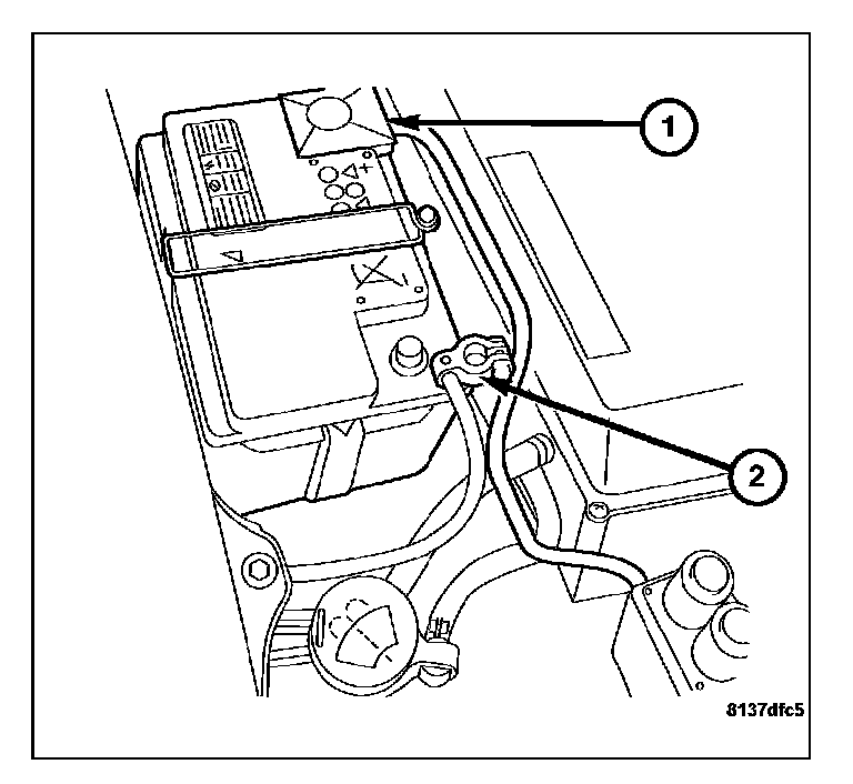 2. Install the ignition coil retaining bolt (2). Tighten the bolt to 8 N.m (71 in. lbs.).