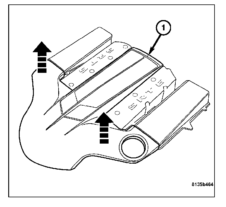 2. Remove the engine cover (1). Grasp both corners of the engine cover, and pull up firmly.