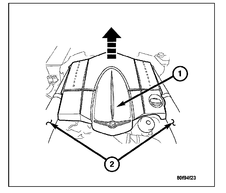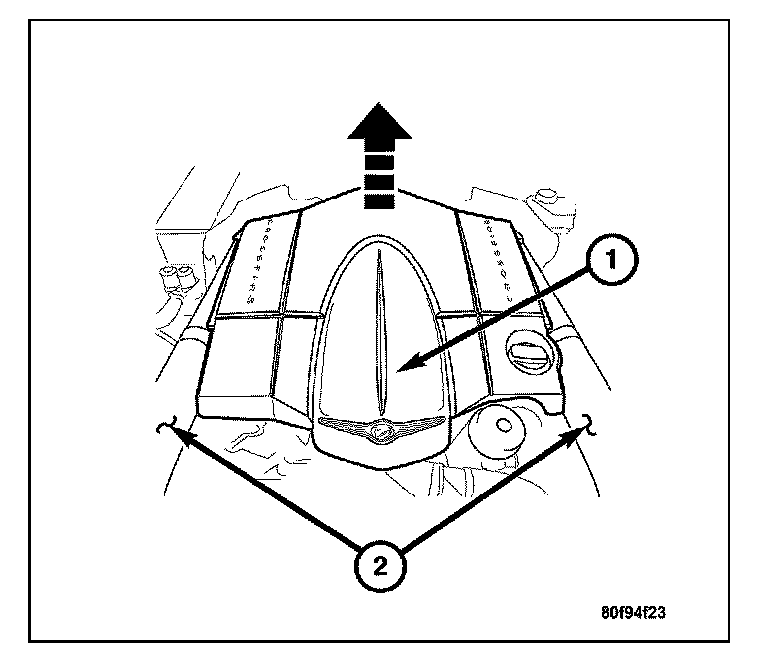 3. Remove the engine cover (1). Grasp both corners of the engine cover, and pull up firmly.