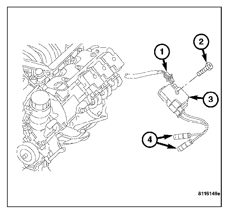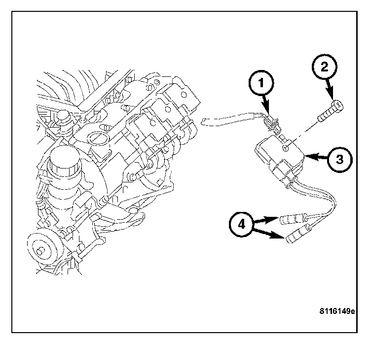 4. Disconnect the ignition coil wire harness connector (1).