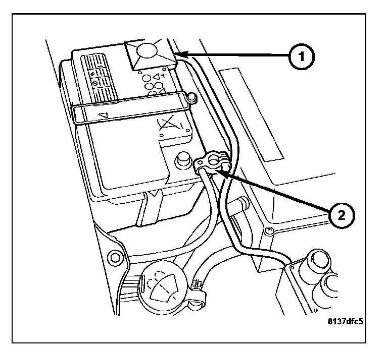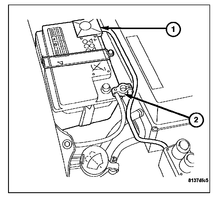 1. Verify the negative battery cable (2) is disconnected before proceeding. Wait two minutes for the system capacitor to discharge before further service.