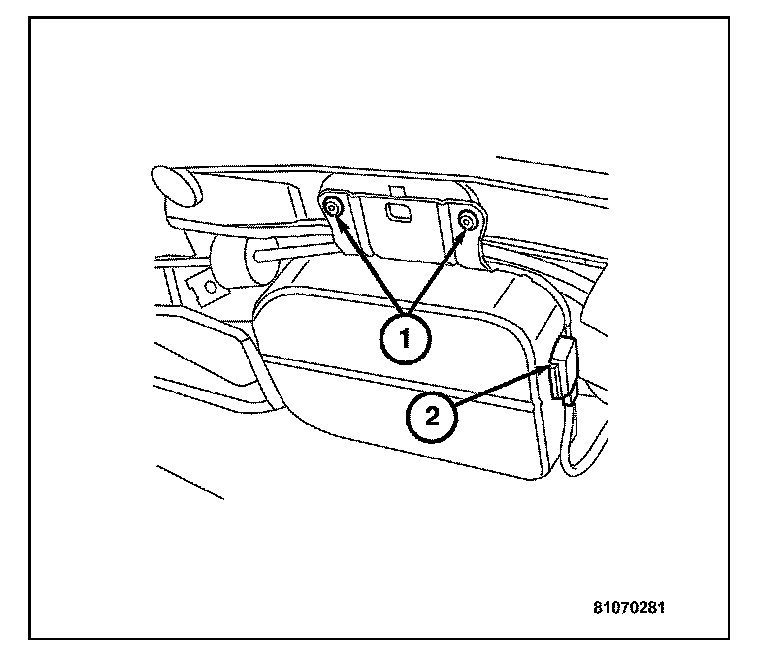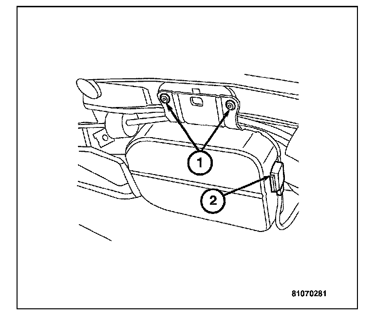 5. Disconnect the side impact airbag squib harness connector (2) from the side impact airbag.