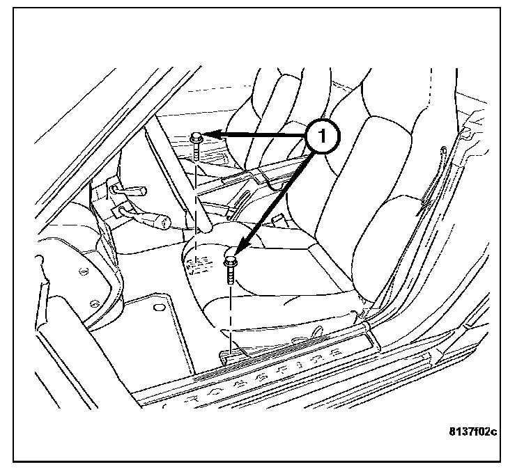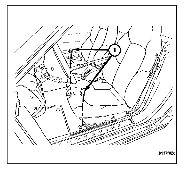 4. Remove the seat track front bolts (1).