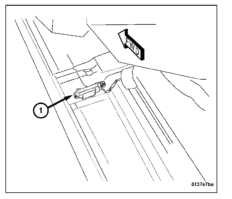 15. Remove the two bolts attaching the side impact sensor (1) to the body cross brace.