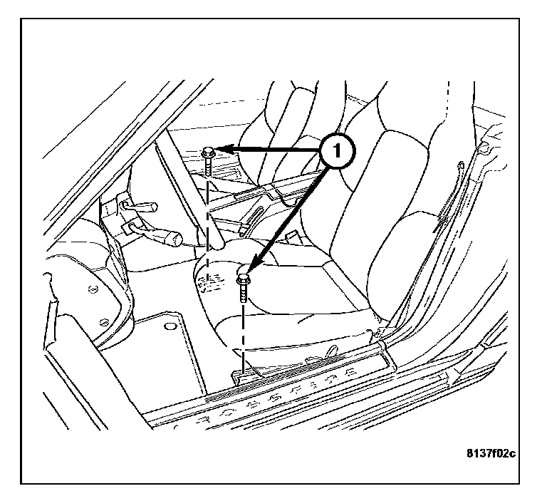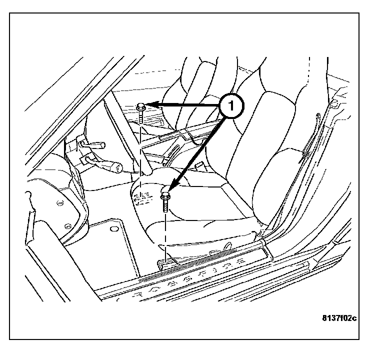 4. Remove the seat track front bolts (1).