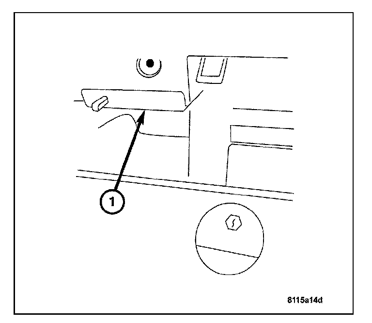 The glove box lamp/switch (1) is a self-contained set of switches, lamp, and housing assembly that provides illumination into the glove box compartment whenever the glove box door is opened. It is located behind the glove box door at the top of the liner, just to the left of the latch striker.
