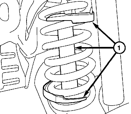 3. Remove the shock absorber lower mounting nut and bolt (1).