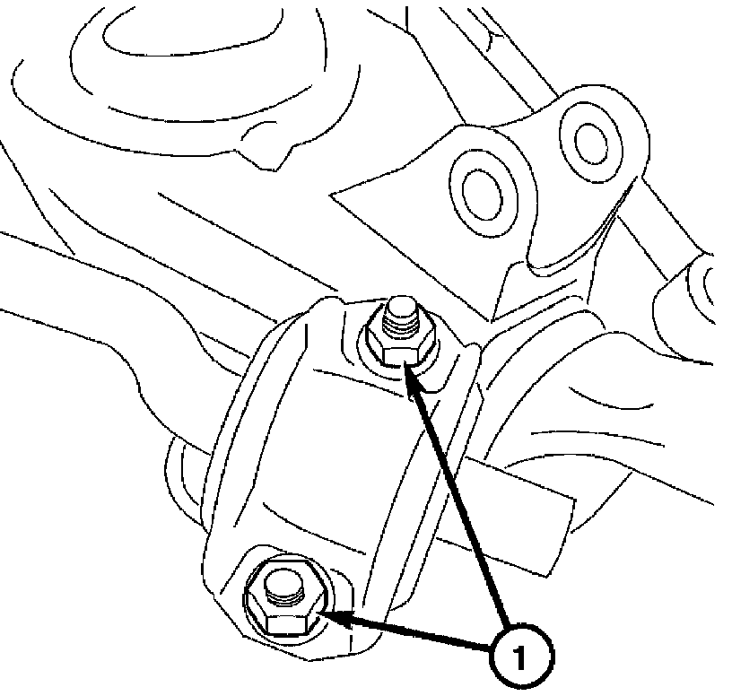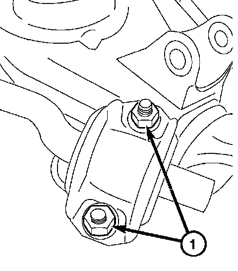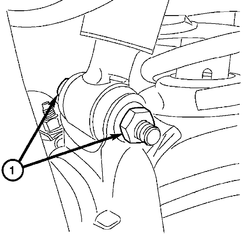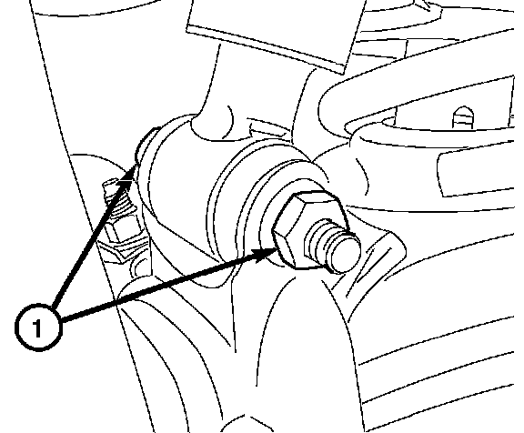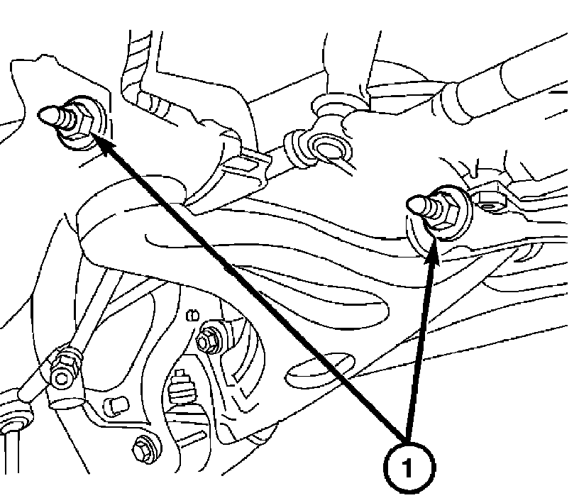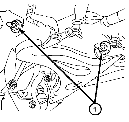 8. Remove the two bolts (1) attaching the lower control arm to the frame.