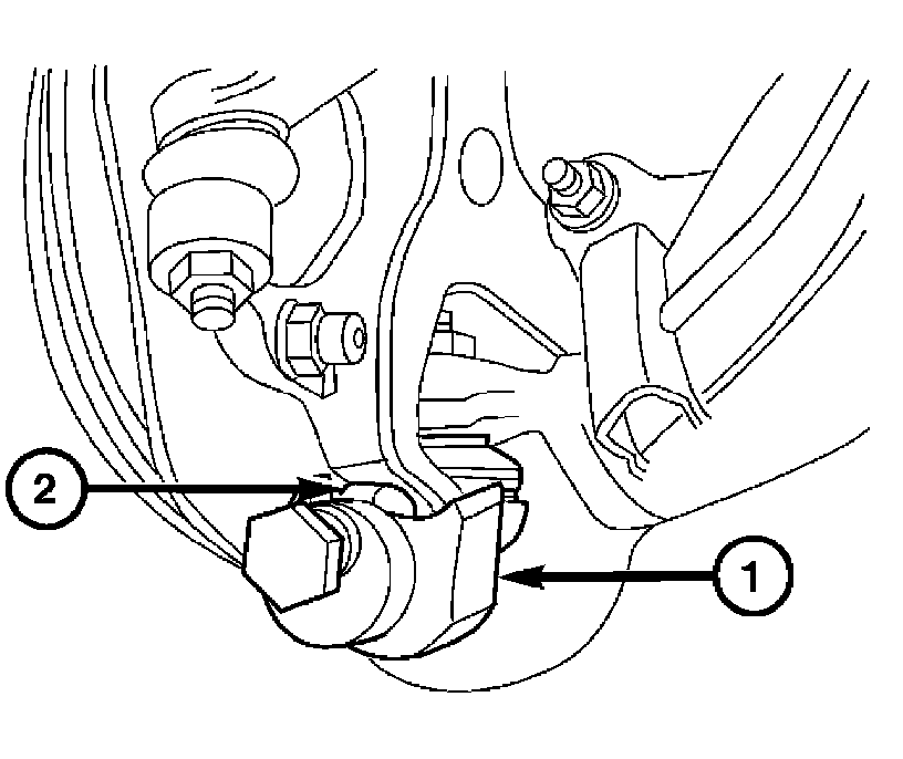 5. Remove the sway bar from the lower control arm by removing the two nuts (1) then removing the clamp.