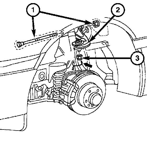 3. Remove the ball joint nut (3) from the upper control arm (2).