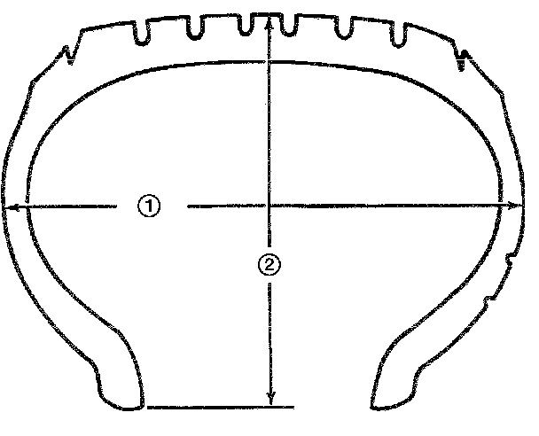 In a metric sire size as P185/80R13. The first letter of the tire size tells if the tire is used for passenger (P), temporary (T), or commercial (C) use. The second designation tells the section width (1) of the tire. The section width is the distance in millimeters from one side of the tire to the other when it is inflated normally. The third designation tells the aspect ratio (2). The aspect ratio (2) is found by dividing the section height (2) by the section width (1). The aspect ratio means the tire's height is 80% of the width. This is called the profile of the tire. Lower profile tires make the vehicle closer to the road and reduce wind drag underneath the vehicle body. The next designation tells the construction type. R means radial tire, B means belted, and D means diagonal (bias). The last designation gives the wheel rim in inches. The most common car rim sizes are 13, 14, 15. Some rims are as large as 20 inches in diameter.