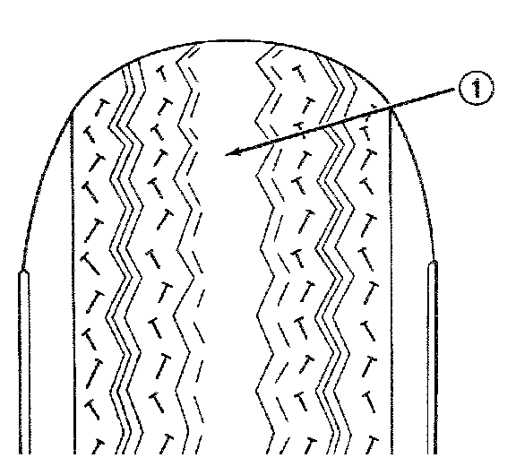 Over-inflation will cause rapid center wear (1) and loss of the tire's ability to cushion shocks.