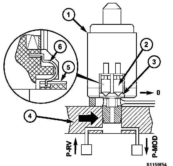 The torque converter lockup clutch PWM solenoid valve (1) is located in the shell of the electric valve control unit and is pressed against the shift plate by a spring.