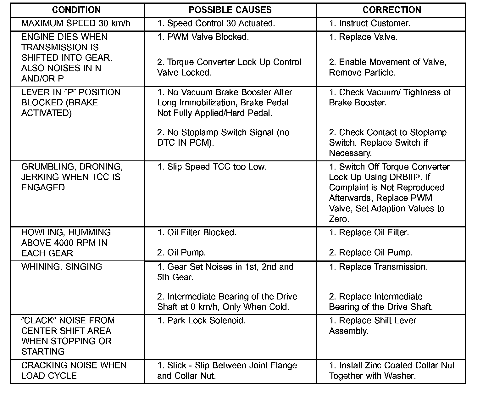 CAUTION: Before attempting any repair on a NAG1 automatic transmission, check for Diagnostic Trouble Codes with the DRB III* scan tool.