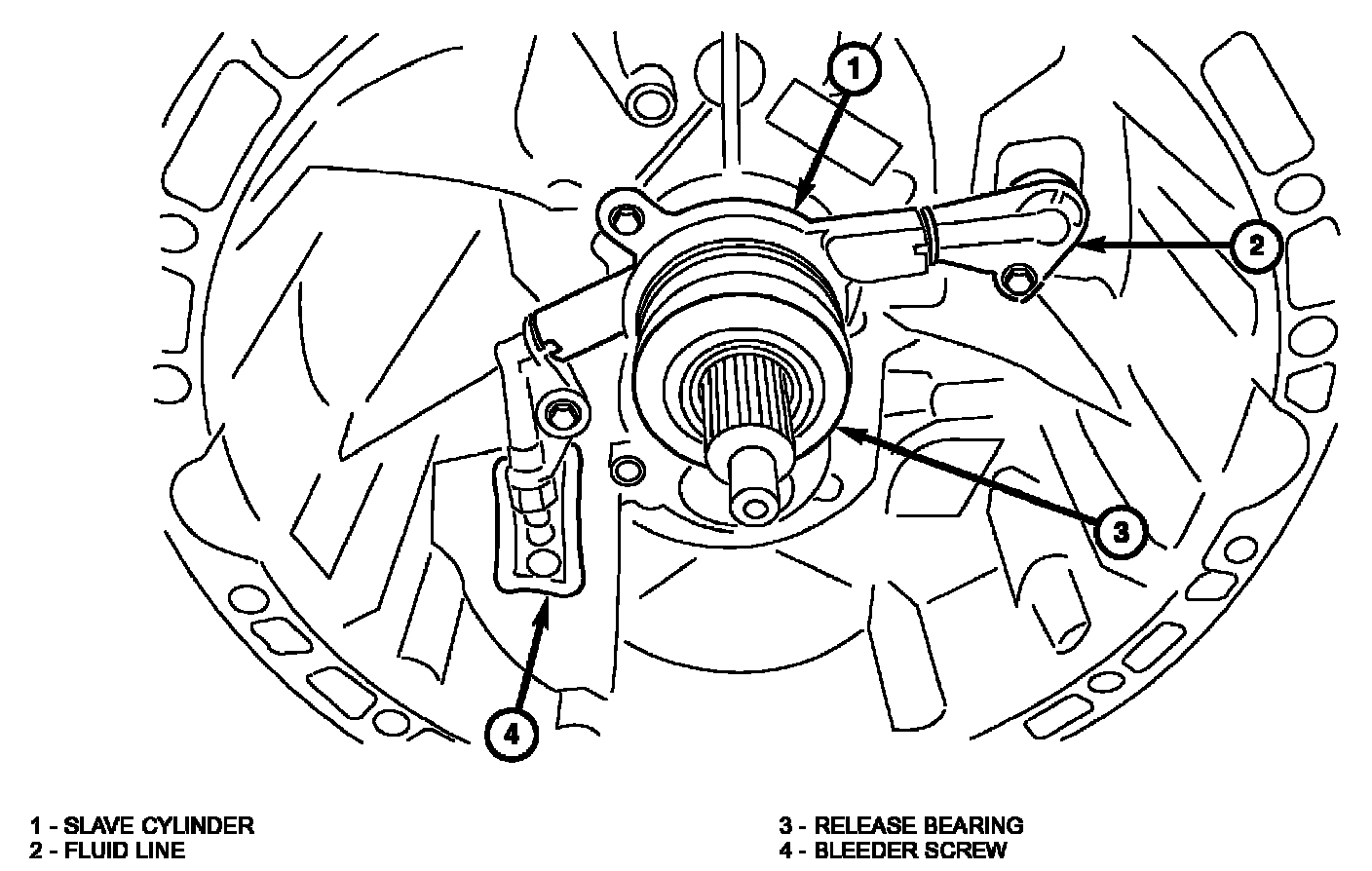 The release bearing is operated by a slave cylinder in the clutch housing. The slave cylinder force causes the release bearing to move into contact with the diaphragm spring. As additional force is applied, the bearing presses the diaphragm spring fingers inward on the fulcrums. This action moves the pressure plate rearward relieving clamping force on the clutch disc. Releasing pedal pressure removes clutch hydraulic pressure. The release bearing then moves away from the diaphragm spring which allows the pressure plate to exert clamping force on the clutch disc.