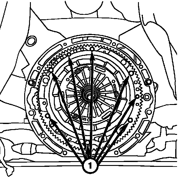 6. Tighten the clutch cover bolts (1) until all bolts are fully seated. Tighten to 25 Nm (18 ft. lbs.).