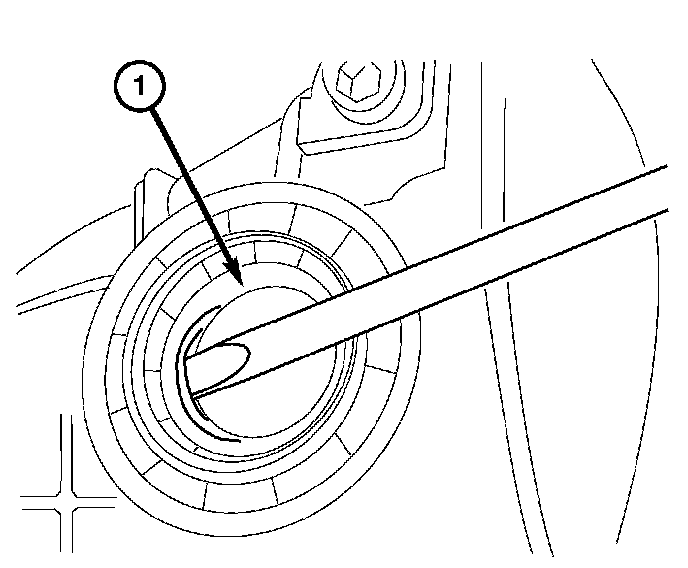2. Remove the axle shaft seal (1) with a suitable prying tool.