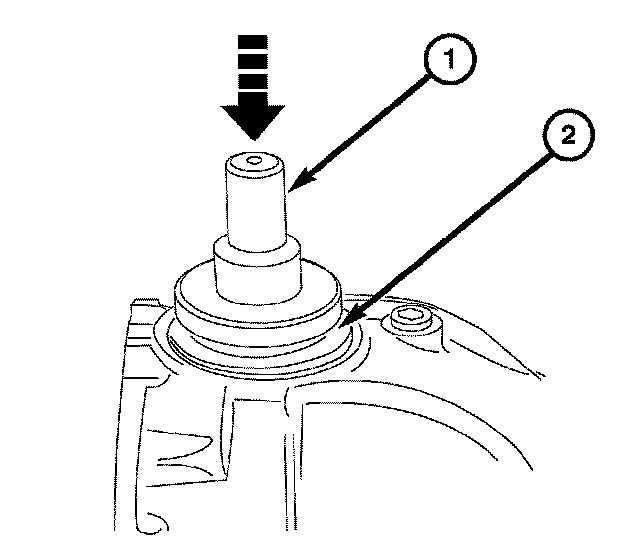 2. Using the Special Tool 9223 Drift (1), drive the new axle shaft seal (2) into the differential housing.