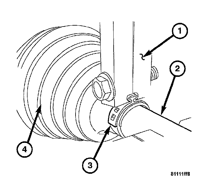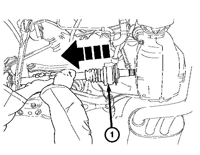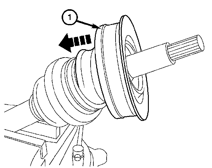 2. Remove the inner C/V boot retaining clamp (1) from the axle halfshaft.