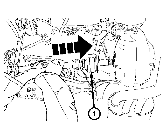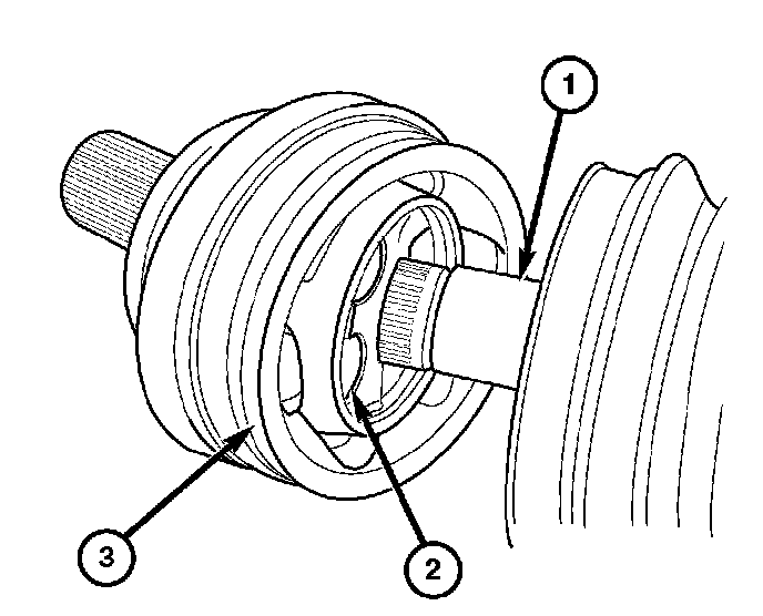 5. Align the splines on the axle halfshaft (1) with the splines on the C/V joint assembly (3).