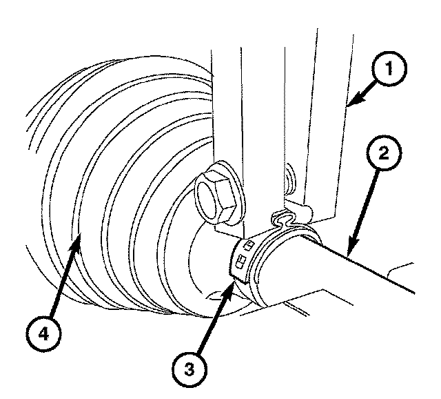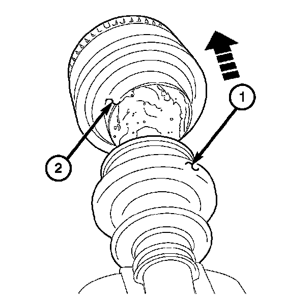 3. Remove the outer C/V boot retaining clamp (2) from the C/V joint housing.