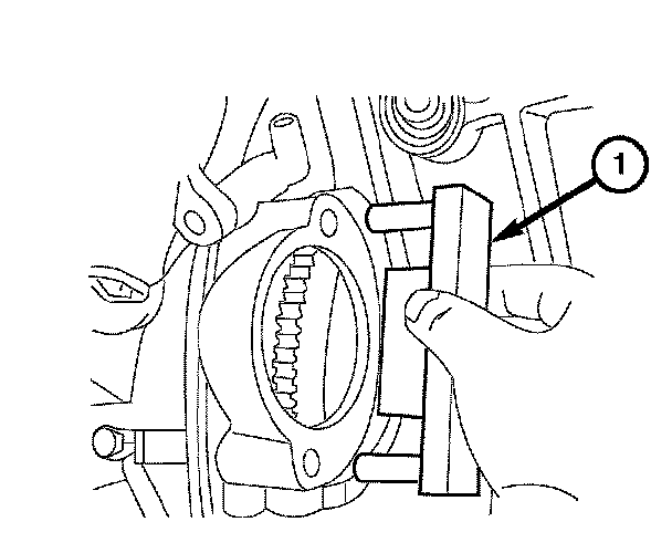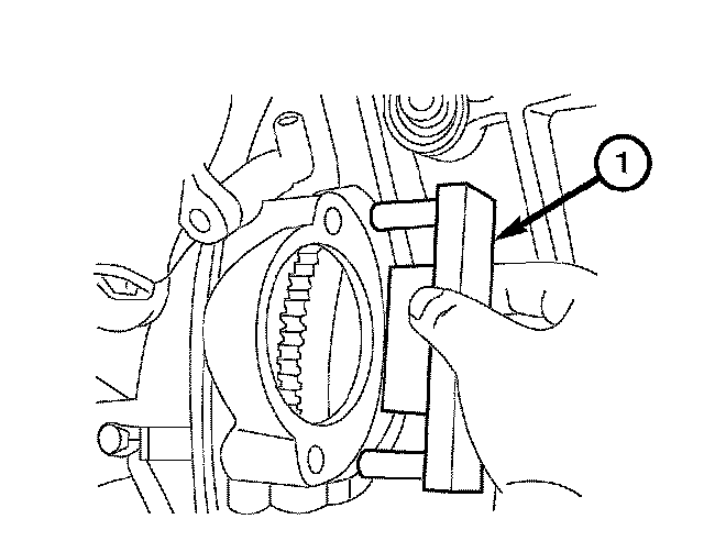 3. Using Special Tool 9102 Flywheel Locking Tool (1), lock the flywheel by inserting the tool in the starter opening.
