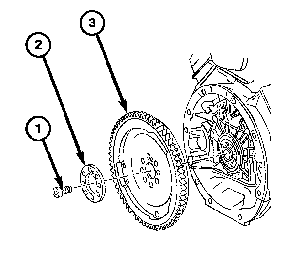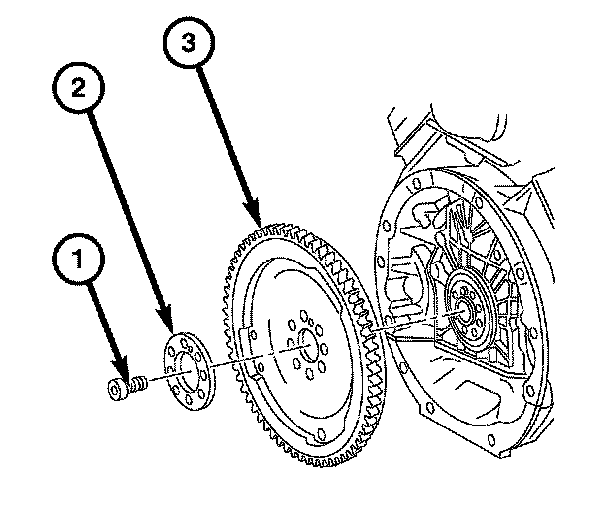 6. Remove the spacer (2) and the flywheel/flexplate (3).