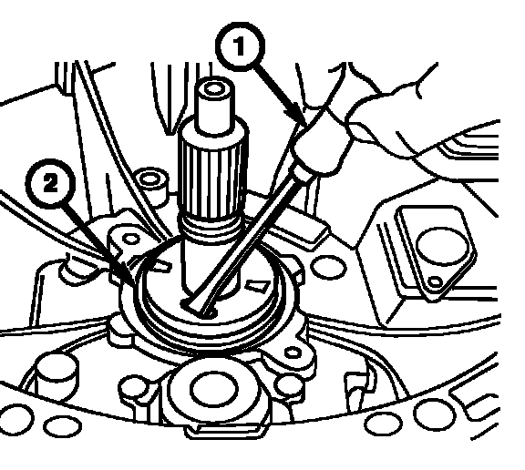 4. Use a screwdriver (1) to pry out the input shaft seal (2).