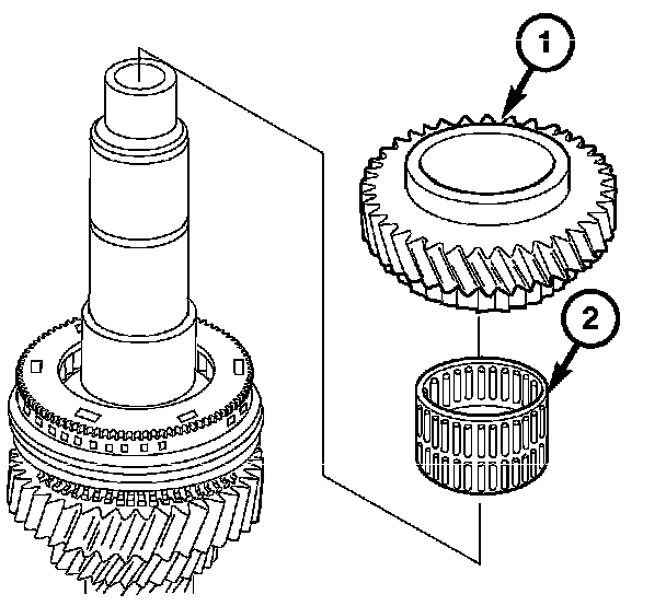 2. Install the 4th gear needle bearing (3), gear (2), and clutch body (1).