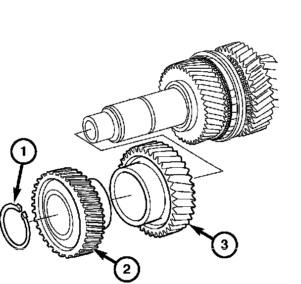 3. Install 4th gear friction ring (3), cone ring (2), and synchronizer ring (1).