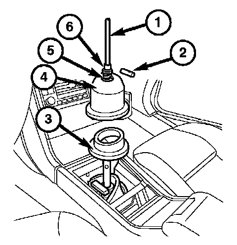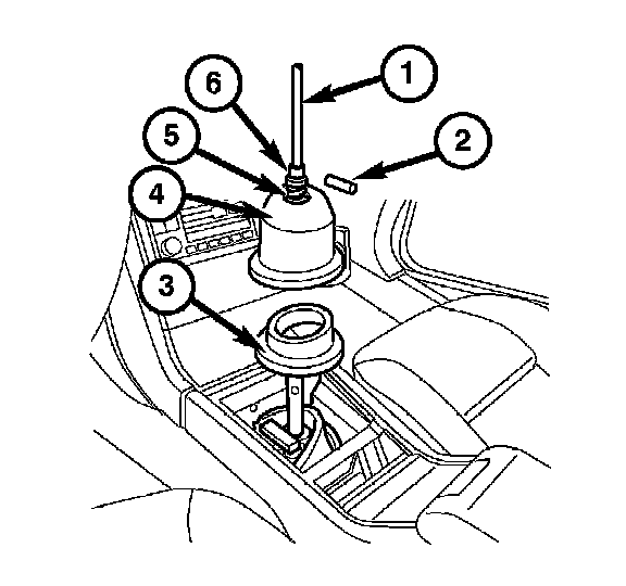 3. Press down on the retainer spring (5) and remove the lock pin (2) from the shift lever (1). Remove the shift lever (1), the washer (6) and spring (5), the cover (4) and the boot (3) from the shift mechanism.