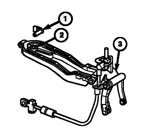 2. Press the release button (3) and install the reverse lockout cable (1) in the bracket. Tighten the lock nut (2).