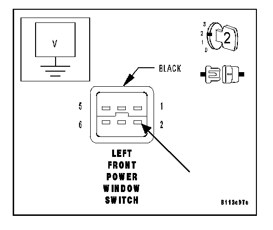 Measure the voltage of the Left Power Window Switch Sense circuit at the Left Front Power Window Switch harness connector.
