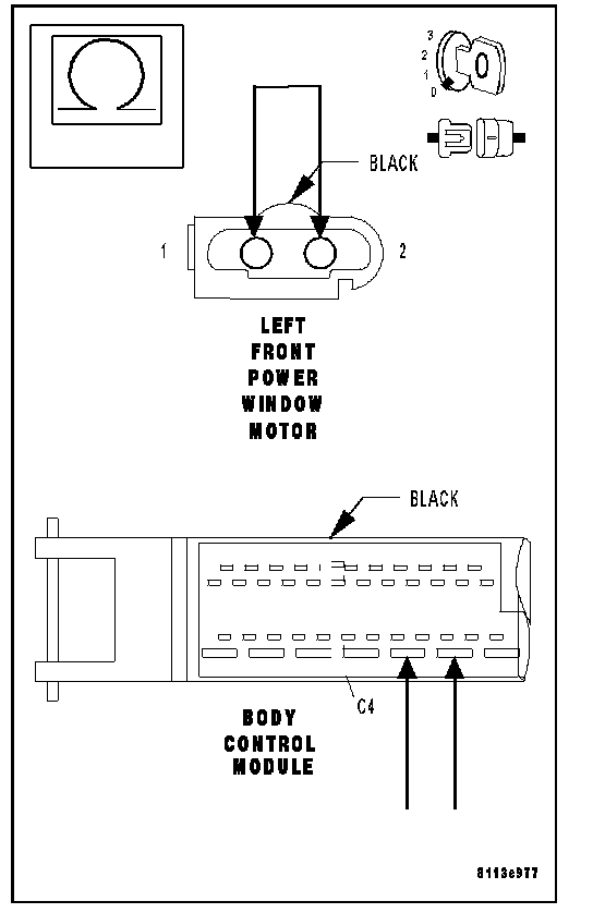 Measure the resistance of the Left Power Window Switch Sense circuit from the Left Front Power Window Switch harness connector to the BCM C4 harness connector.